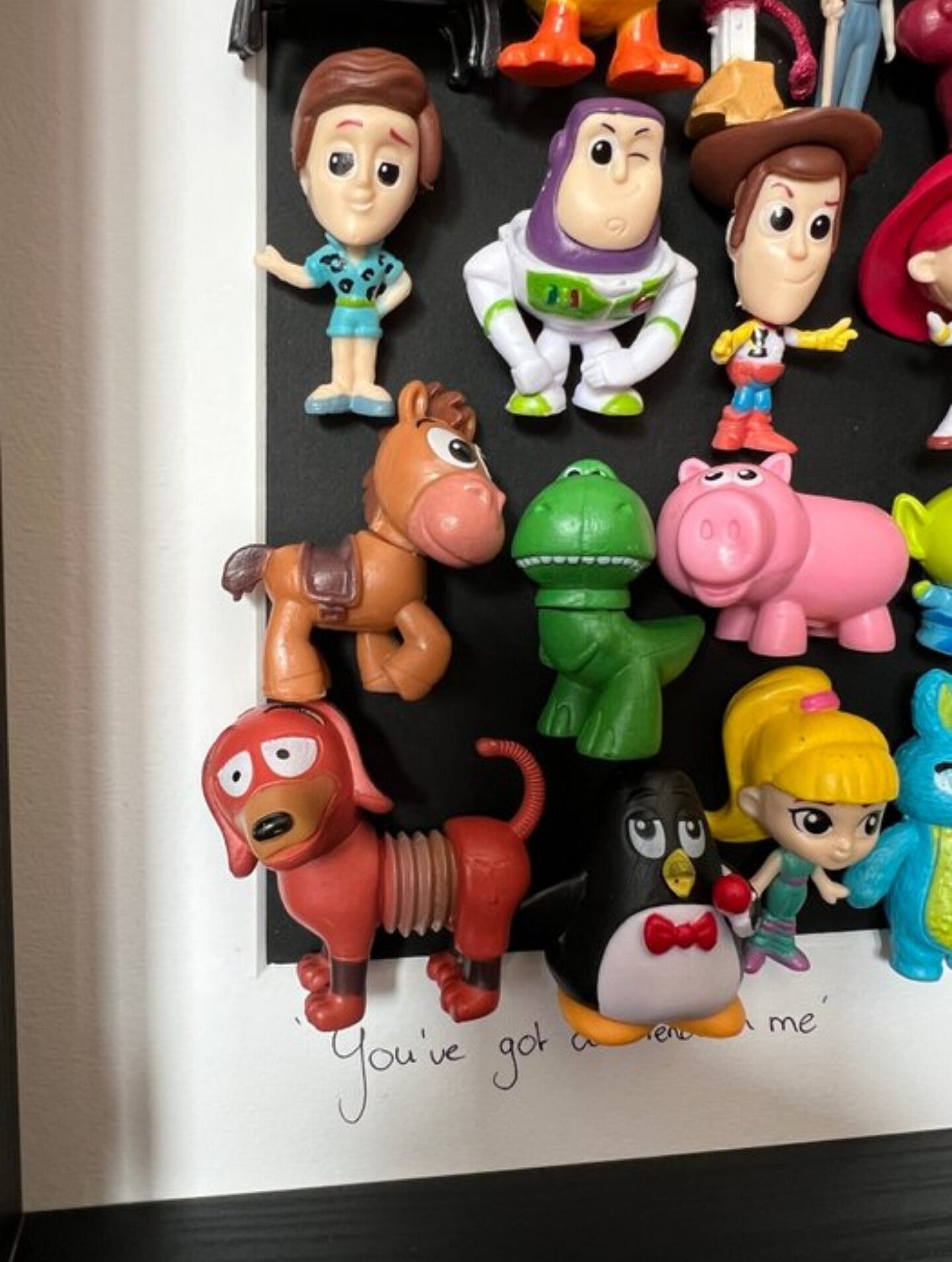 Dit kunstwerk is hoog 28,5 cm, breed 24,4 cm en diep 6 cm. Een echte eyecatcher!