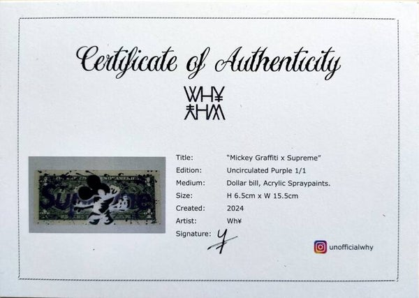 Dollar Art van WhyCreationz. Mickey Graffiti x Supreme Purple.