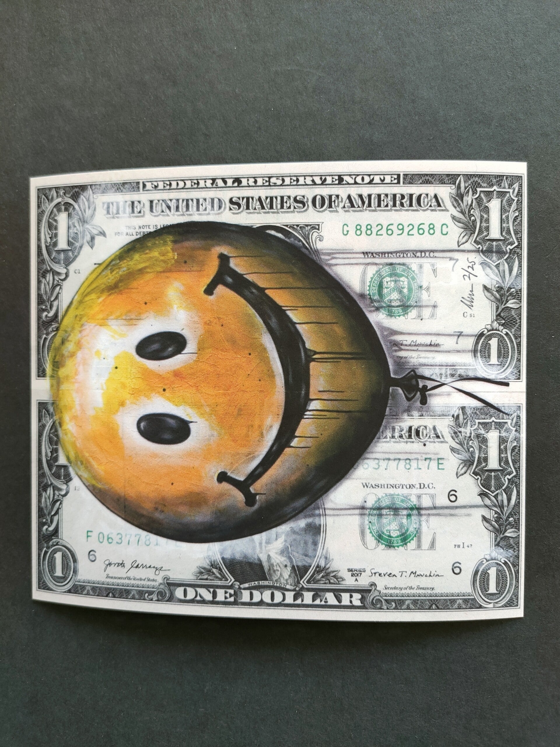 Gelimiteerde oplage van 25 exemplaren (2/25). Giclée pigmentinkt print op 230g/m2 glad kunstpapier (dus geen echt biljet).