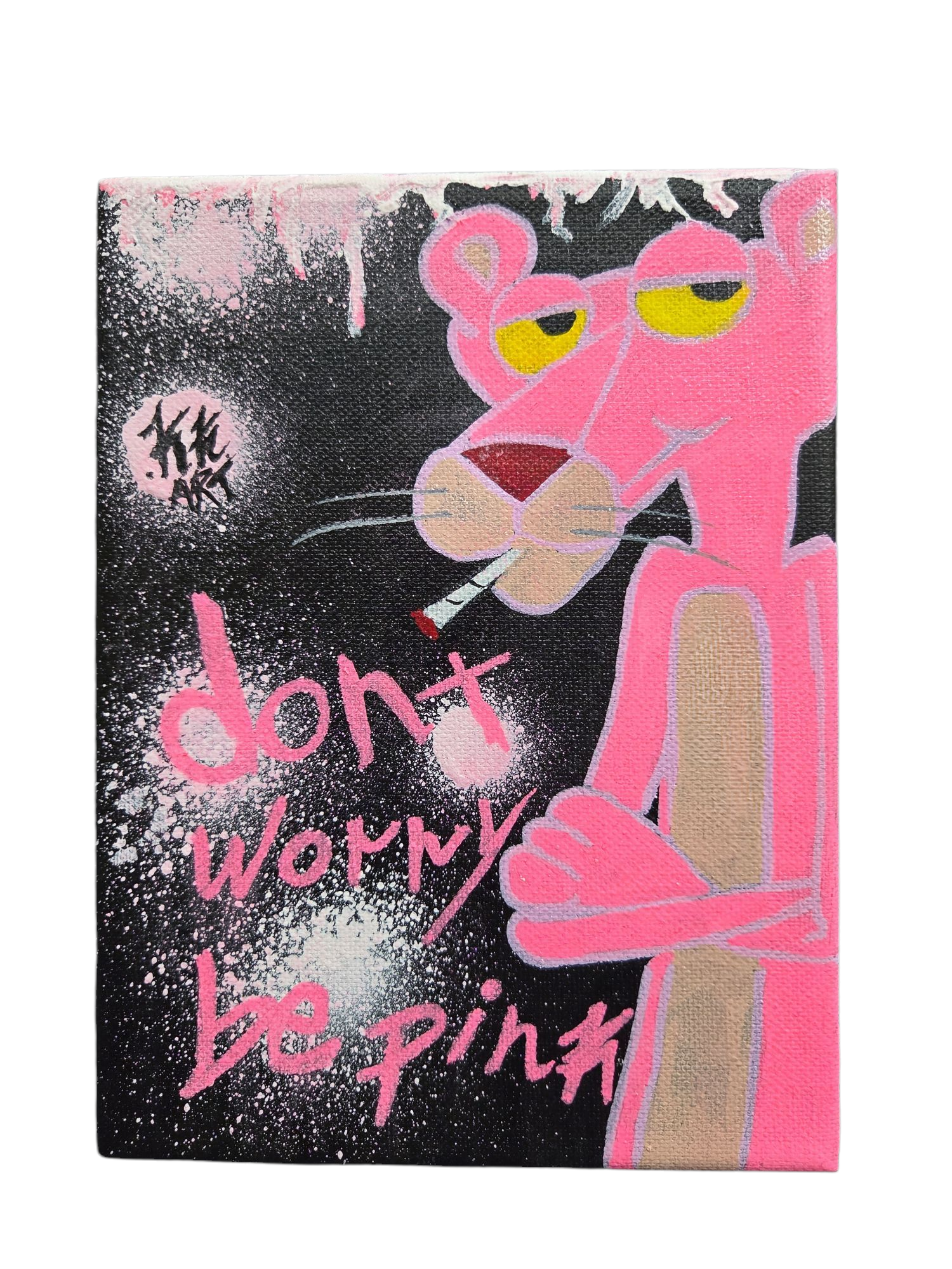 Street Art van Ciccio Art/KK art (2002). Dit unieke kunstwerk met de titel Pink.Panter (2025) is handbeschilderd (er is geen gebruik gemaakt van sjablonen) en handgesigneerd en gedateerd door de kunstenaar. Inclusief COA (Certificaat van Authenticiteit). Gemengde techniek: Acrylic markers. Afmetingen: 20x 10 cm.