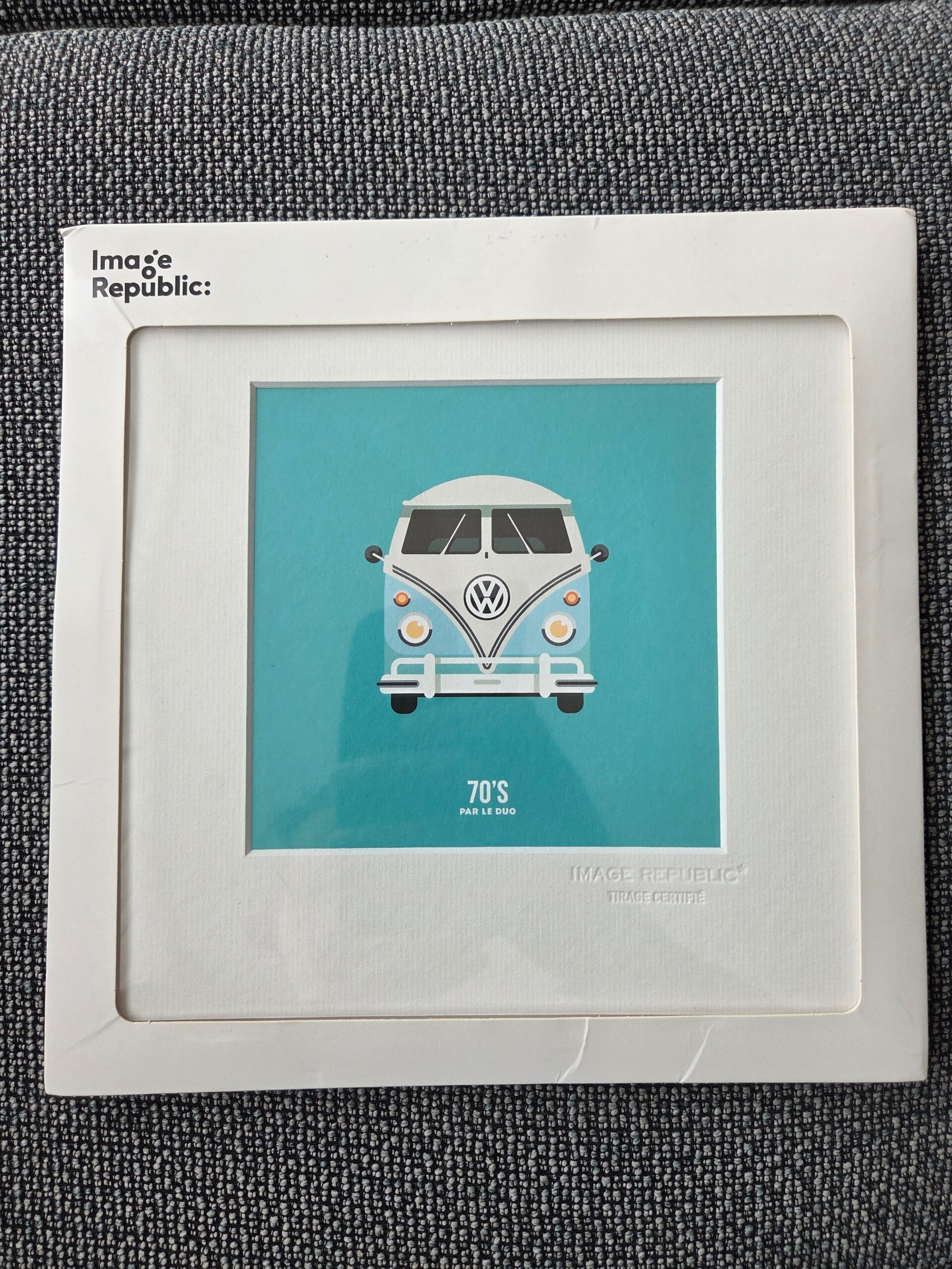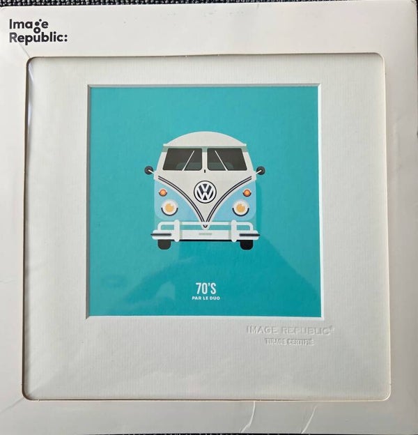 Originele affiche van het Franse atelier Image Republic. Titel "70's Combi" Le Duo. Afmetingen: 22x22 cm in gesealde verpakking.