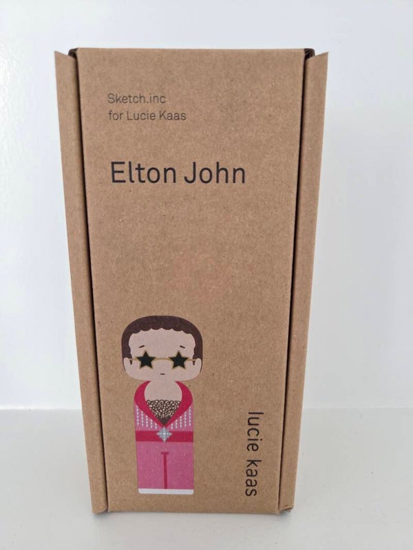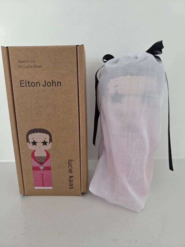 Deze uitgave van de Lucie Kaas kokeshi pop is een eerbetoon aan de muzieklegende, mode-icoon, grote inspiratiebron en rolmodel voor alle generaties; sir Elton John.