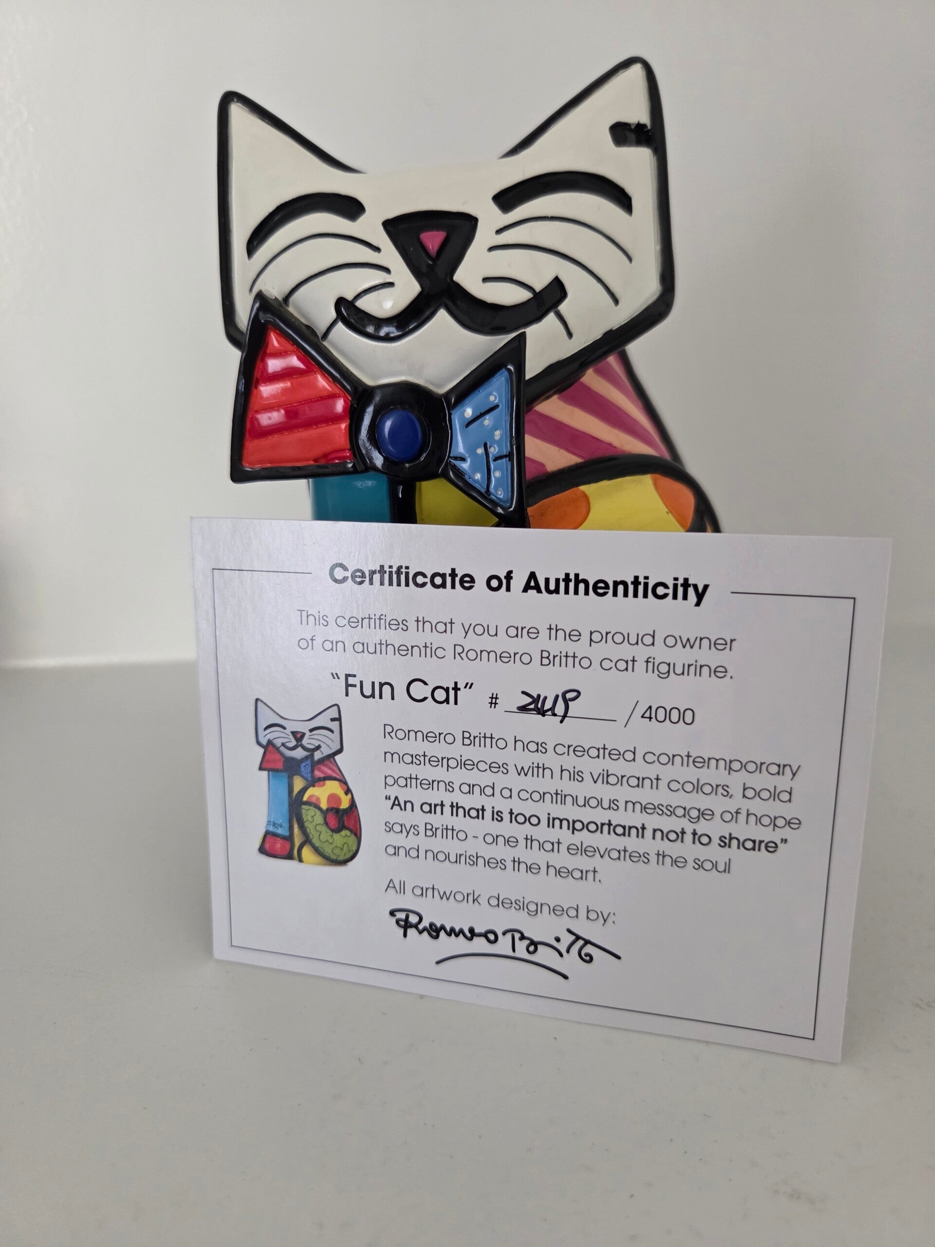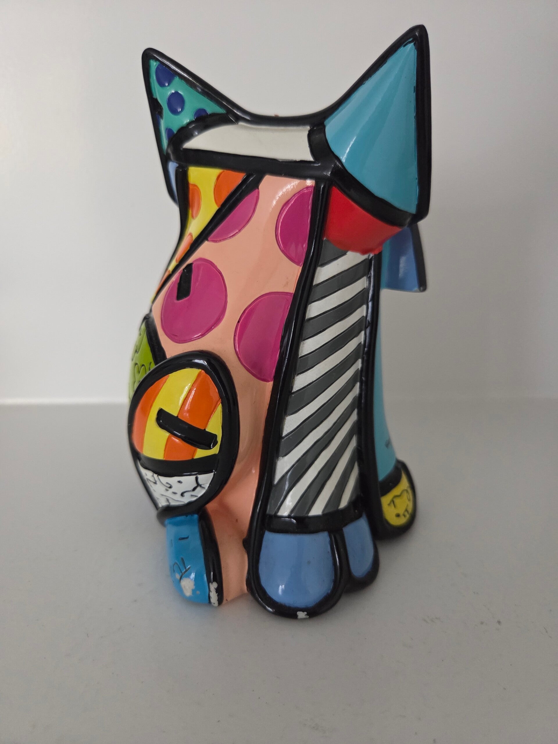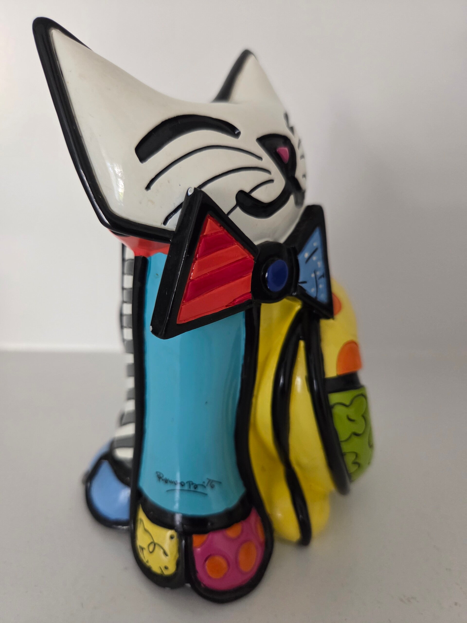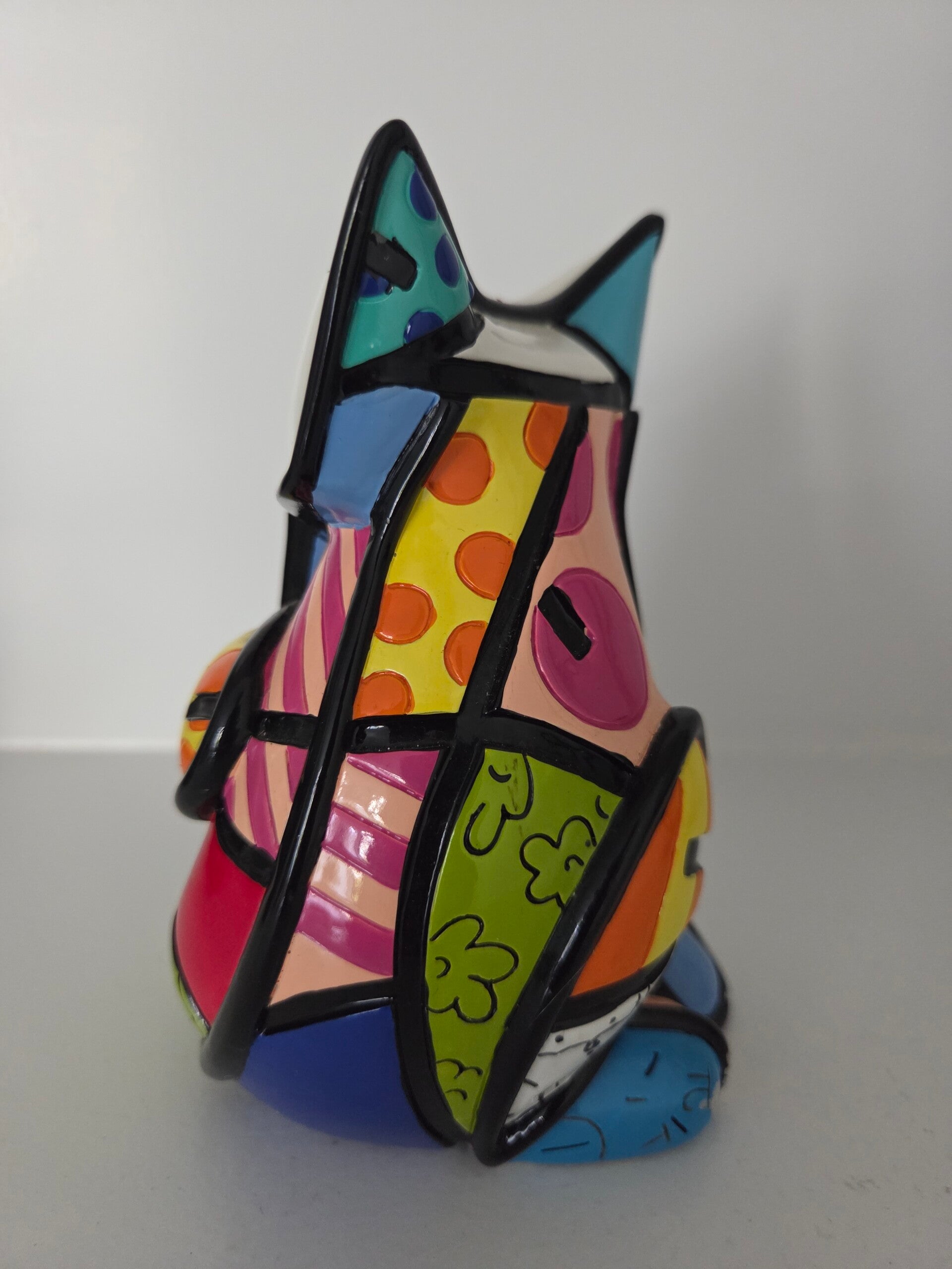 Zeldzaam beeldje van Pop Art kunstenaar Romero Britto: Fun Cat. Gelimiteerde oplage van slechts 4000 exemplaren en genummerd. Inclusief COA en in originele verpakking. Hoogte 15 cm. Geproduceerd door Giftcraft. Materiaal: polystyreen.