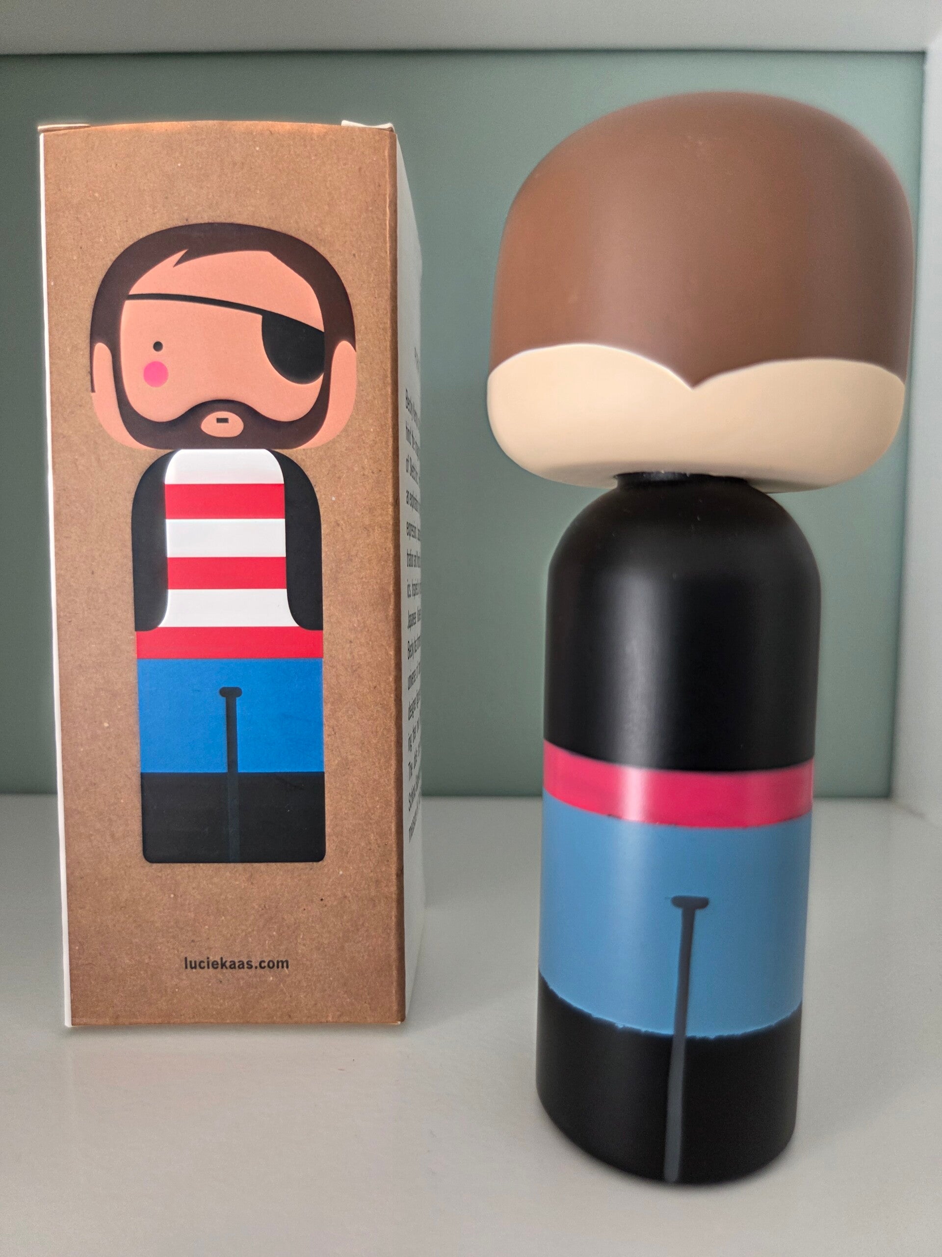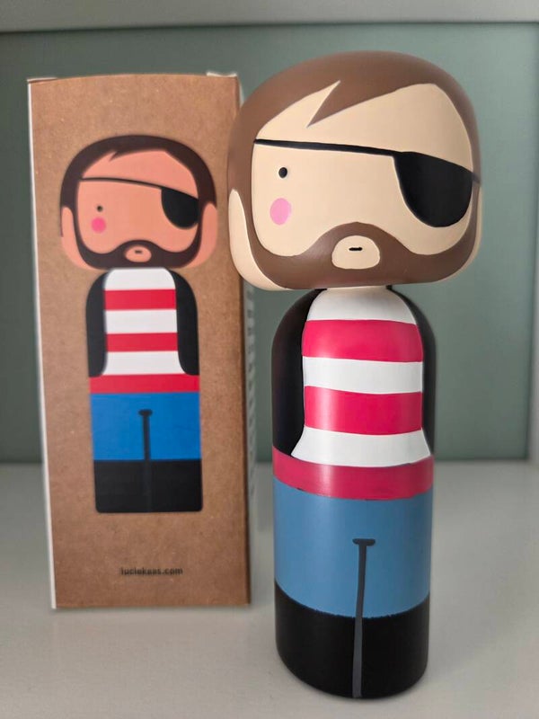 Lucie Kaas Kokeshi doll "Pirate". Zeldzaam! Wordt niet meer geproduceerd en is uitverkocht.