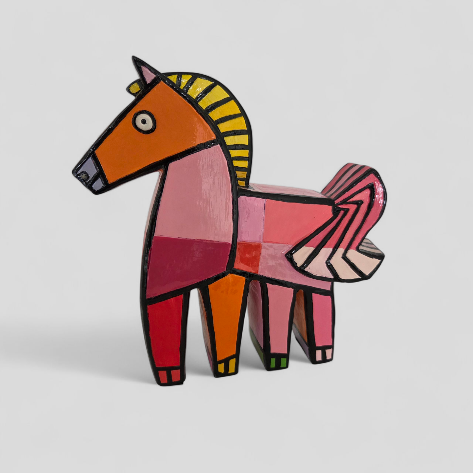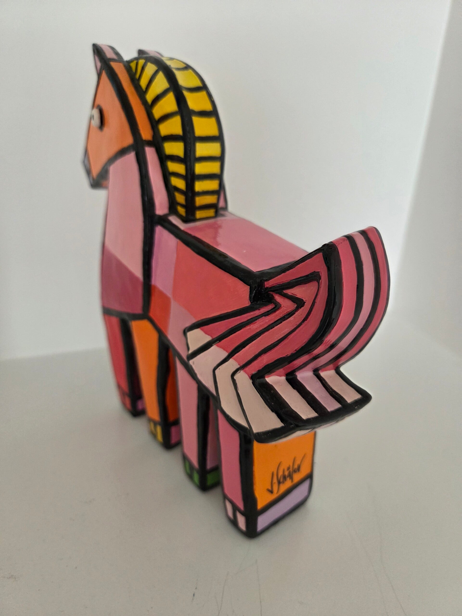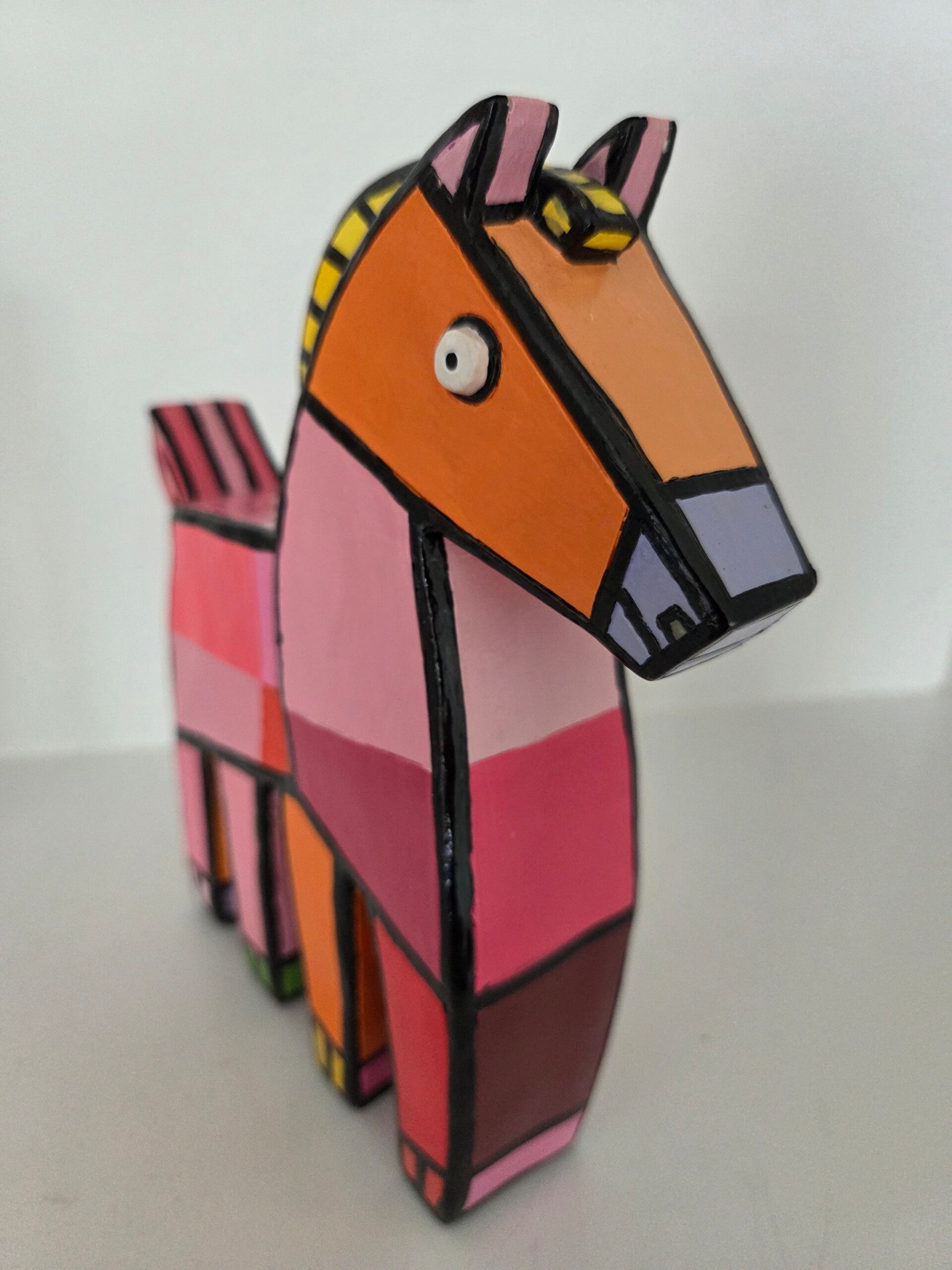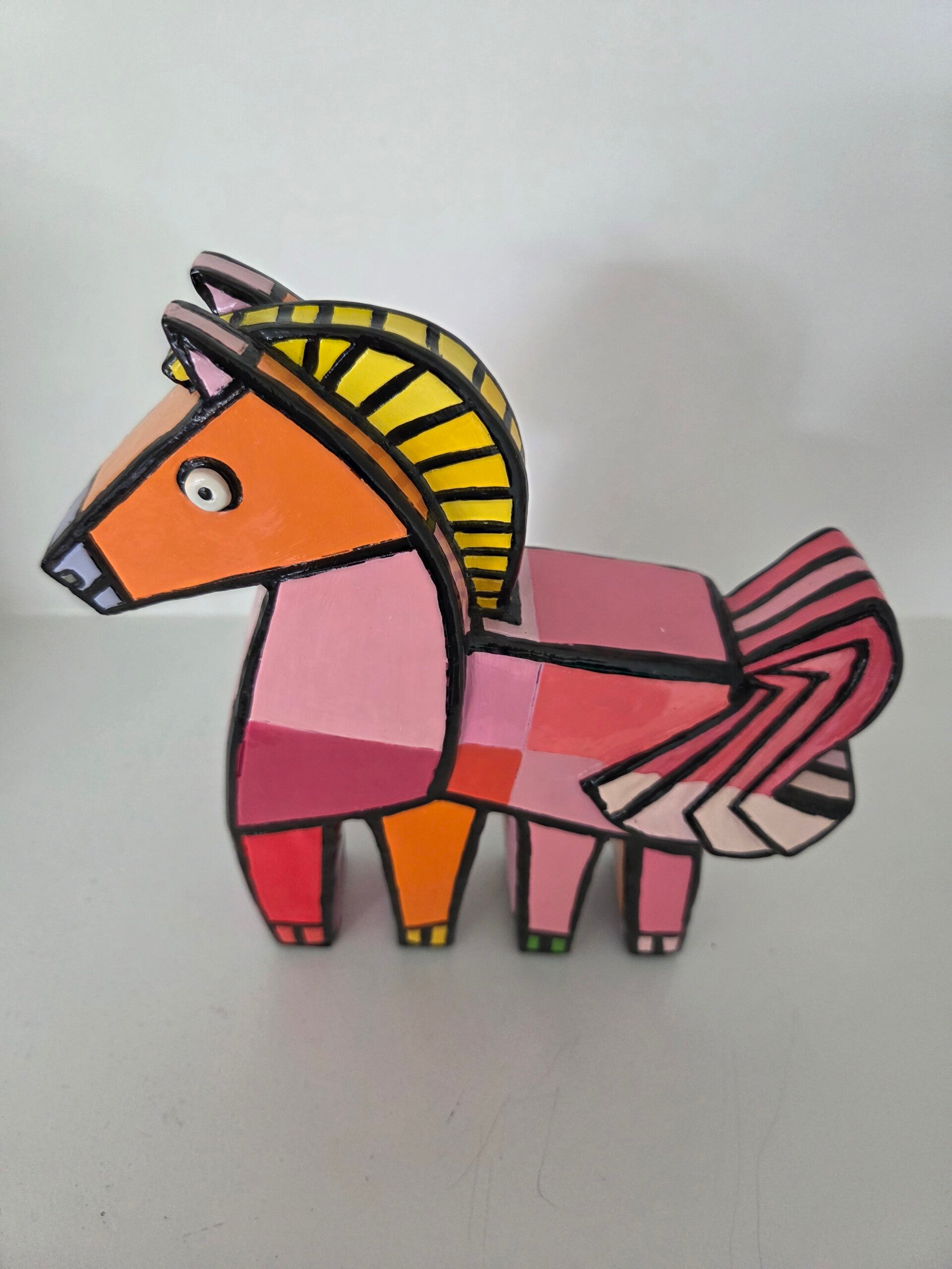 'Happy Horse', roze. Kunstobject gemaakt door Jacqueline Schafer.