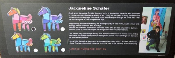 Een leuk en eigenzinnig kunstwerk van de Nederlandse kunstenares Jacqueline Schäfer. Het beeldhouwwerk is vervaardigd in beperkte oplage en genummerd (245/250) en gesigneerd. We prijzen de grote diversiteit van haar collectie en de prachtige kleuren. Perfect om jezelf te trakteren of als cadeau!