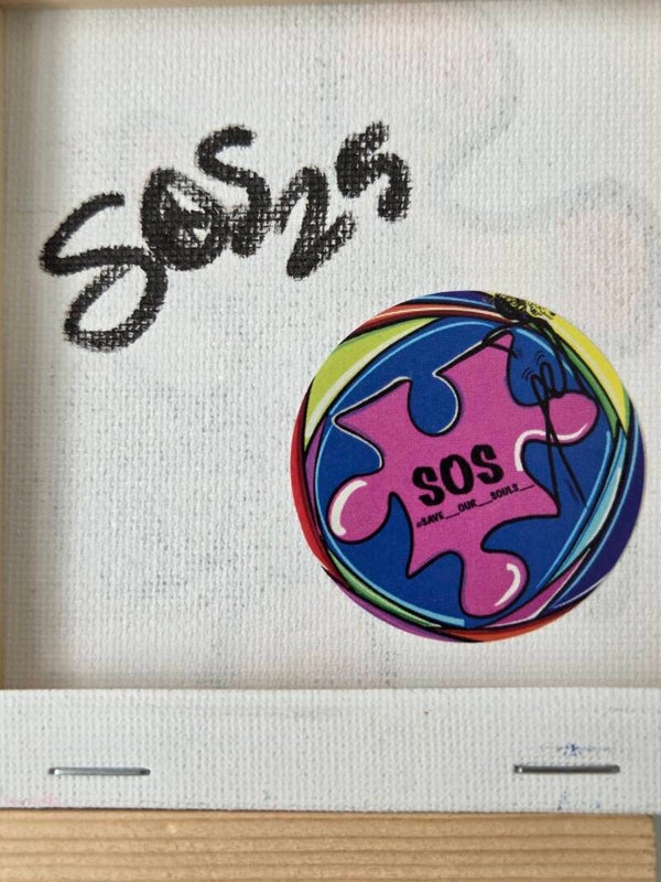 SOS - Save Our Souls - Origineel handgeschilderd kunstwerk op mini canvas