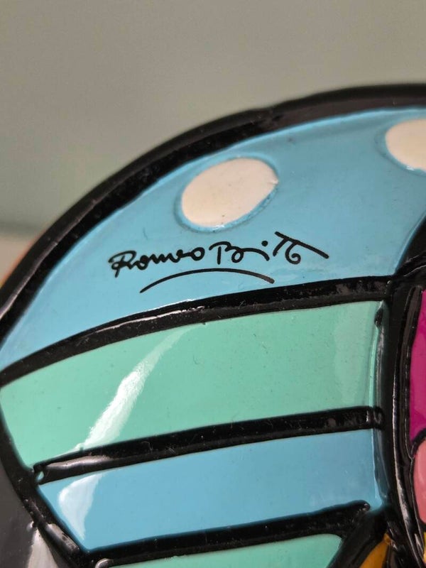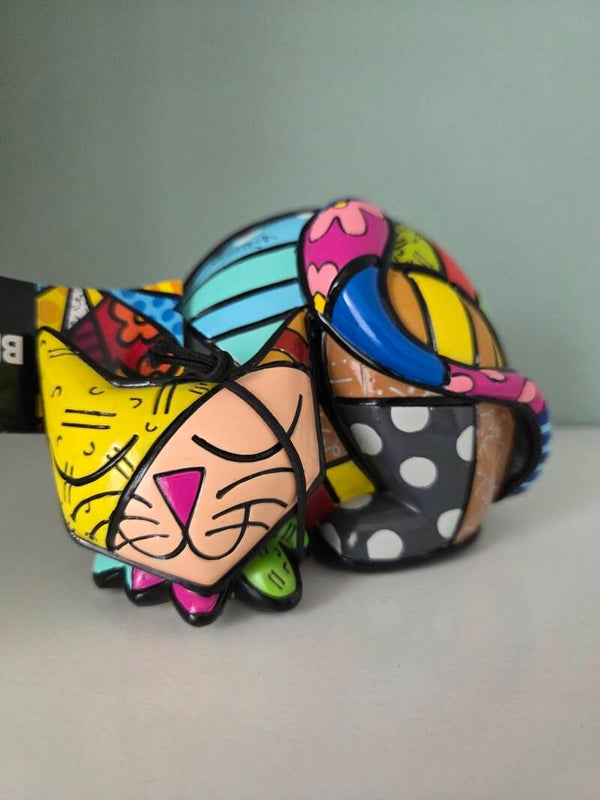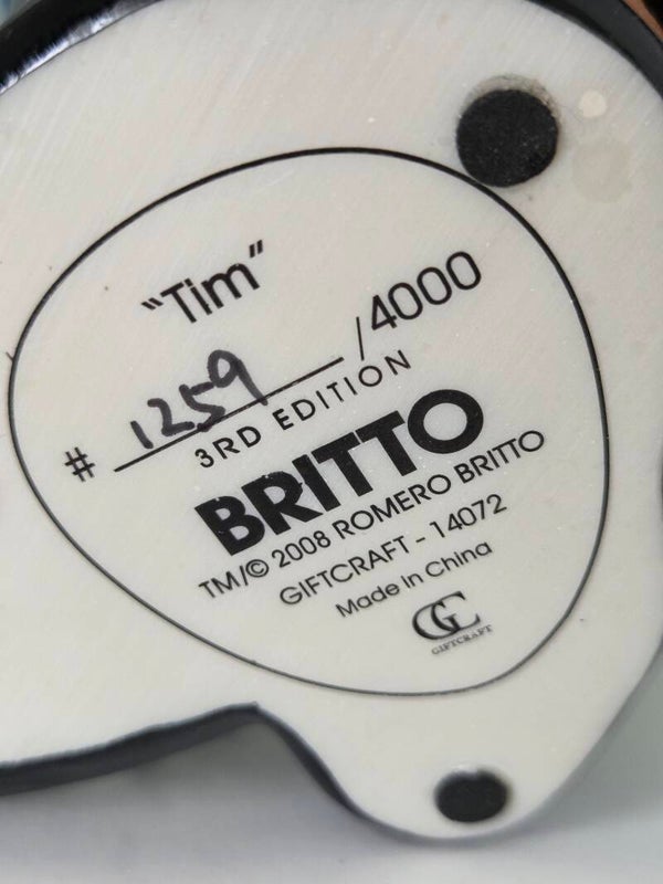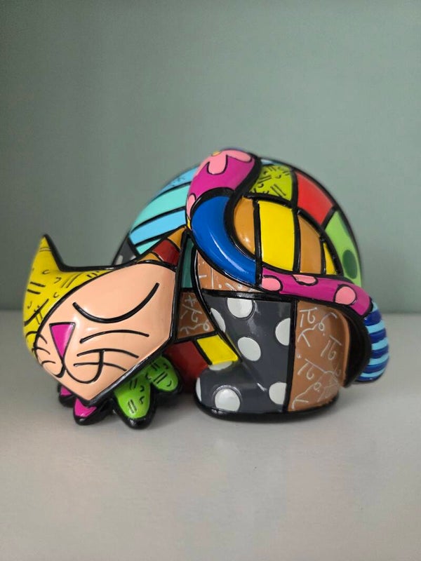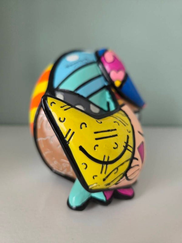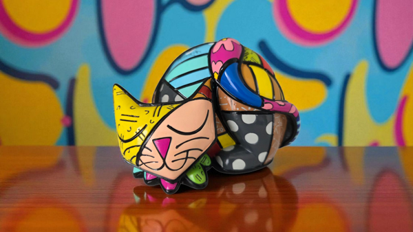 Tim is a captivating sculpture from the colorful world of Romero Britto, showcasing a playful and artistic interpretation of a cat. This sculpture is part of Britto's distinctively vibrant and pattern-rich collection, featuring an array of colors and designs that bring the figure to life with a joyful spirit. Numbered 1259 out of 4000 in its 3rd edition, "Tim" embodies the whimsical and optimistic style that Britto is celebrated for, making it a desirable piece for collectors and enthusiasts of modern pop art.