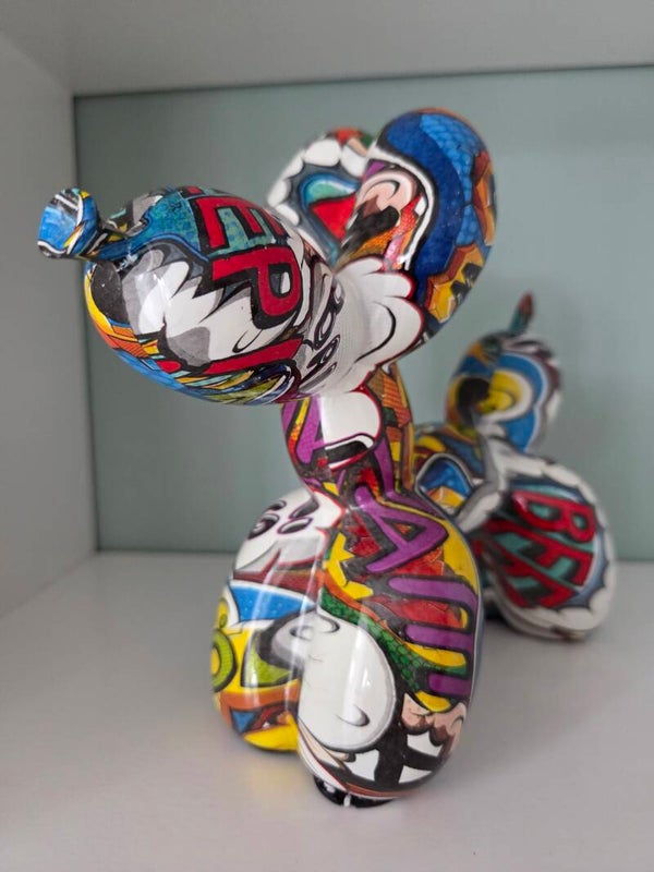 Beeldje van een Balloon Dog. Hoogte 18cm en lengte 22cm. Meerkleurig. Gemaakt van polyresin/ kunsthars.