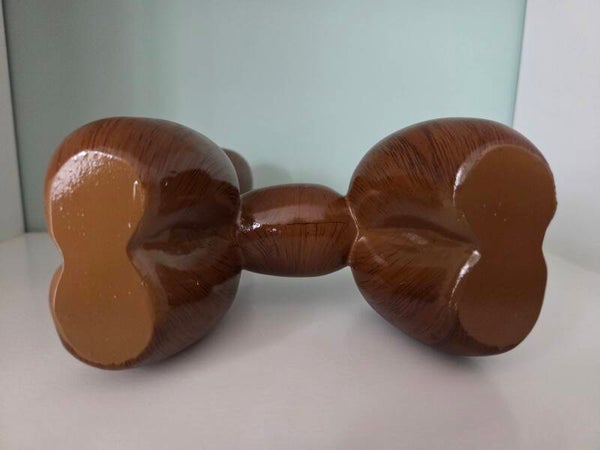 Balloon Dog sculptuur in houtstijl. Gemaakt van kunsthars. Afmetingen: 18cm hoog en 22 cm lang. In doos met piepschuim.