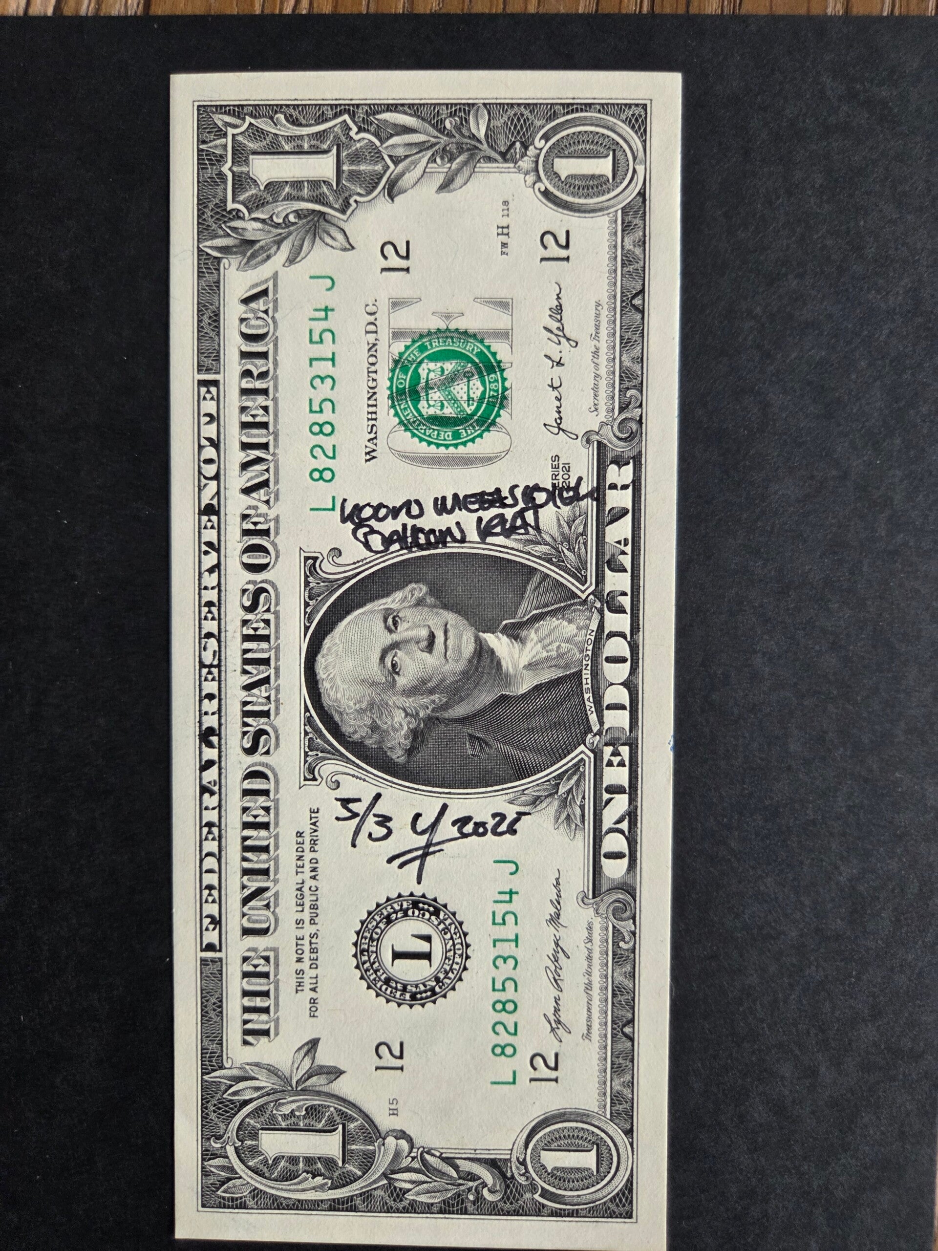 Acrylic Spraypaint op een echt dollar biljet (uncirculated).