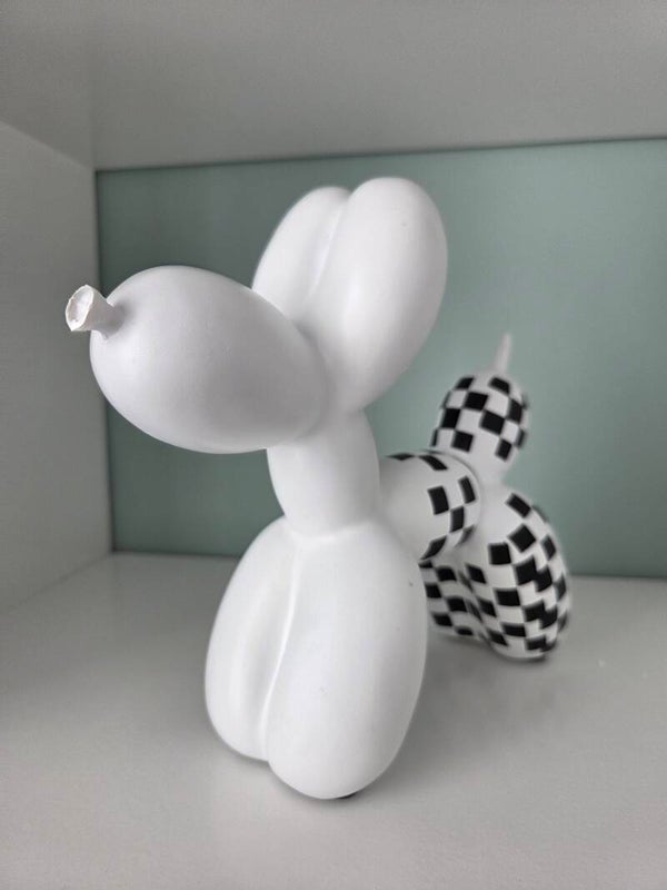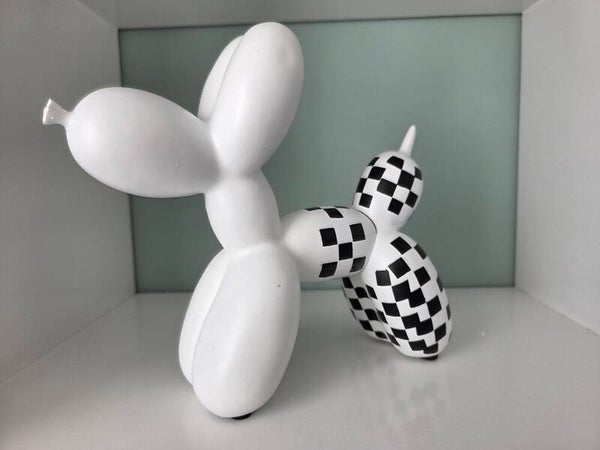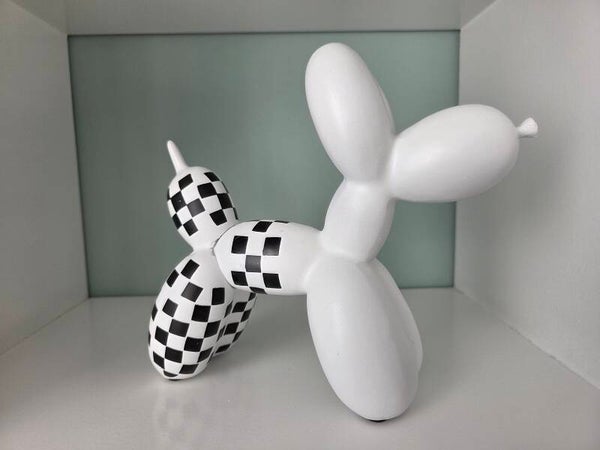 Ballonhond gemaakt van kunsthars met zwart-witte afwerking. Afmetingen: 20 x 7,6 x 18 cm hoog. Inclusief piepschuimverpakking in doos.