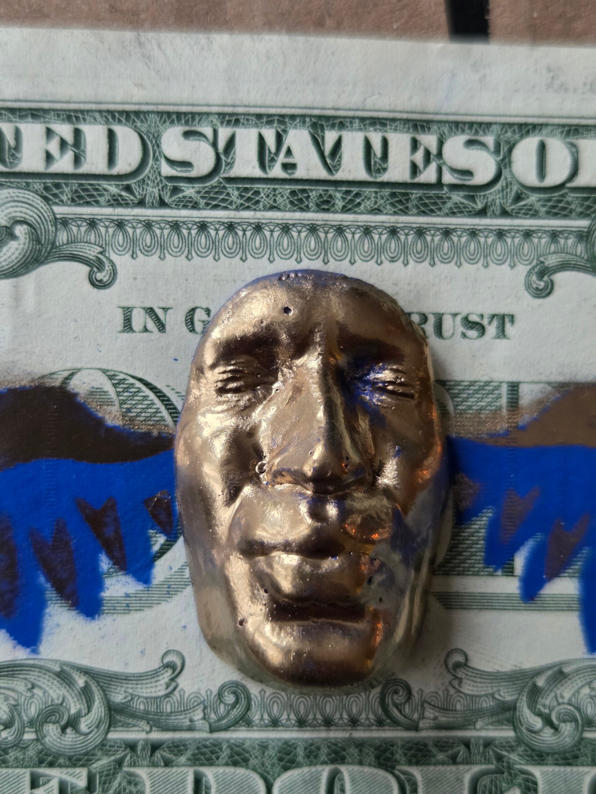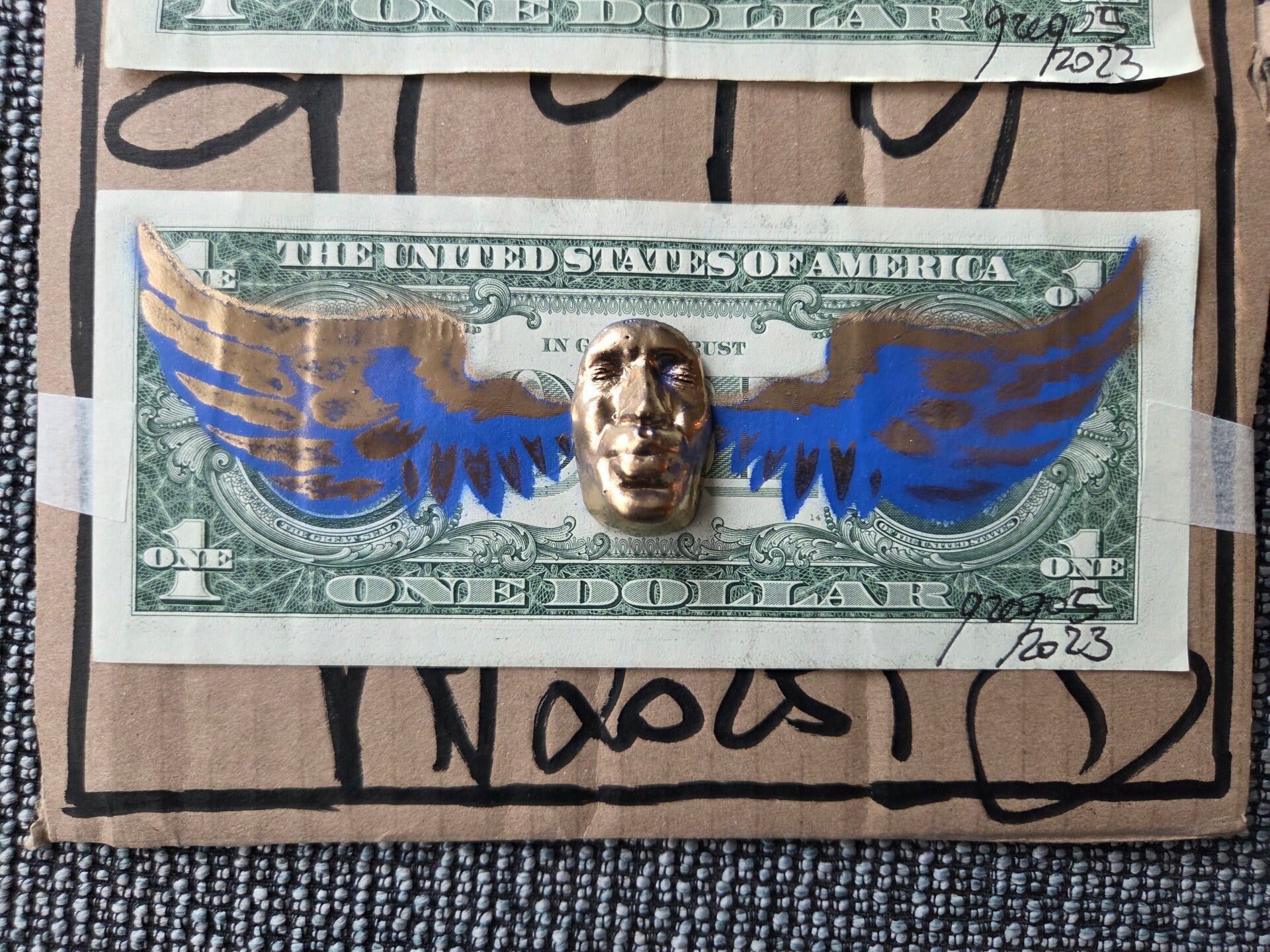 Gemengde techniek. Materiaal: hars, spuitverf op een echte dollarbiljet. Handbeschilderd en handgesigneerd, inclusief COA.
