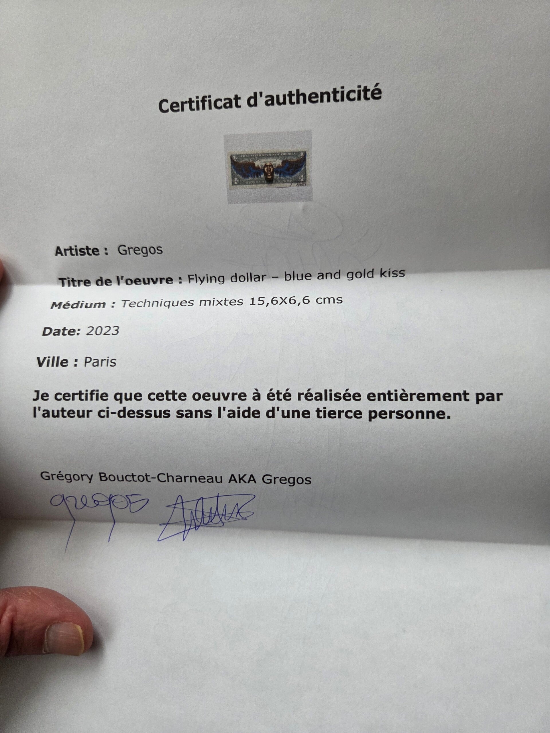 Dollar Art by Gregos - Flying Dollar - Blue and Gold Kiss