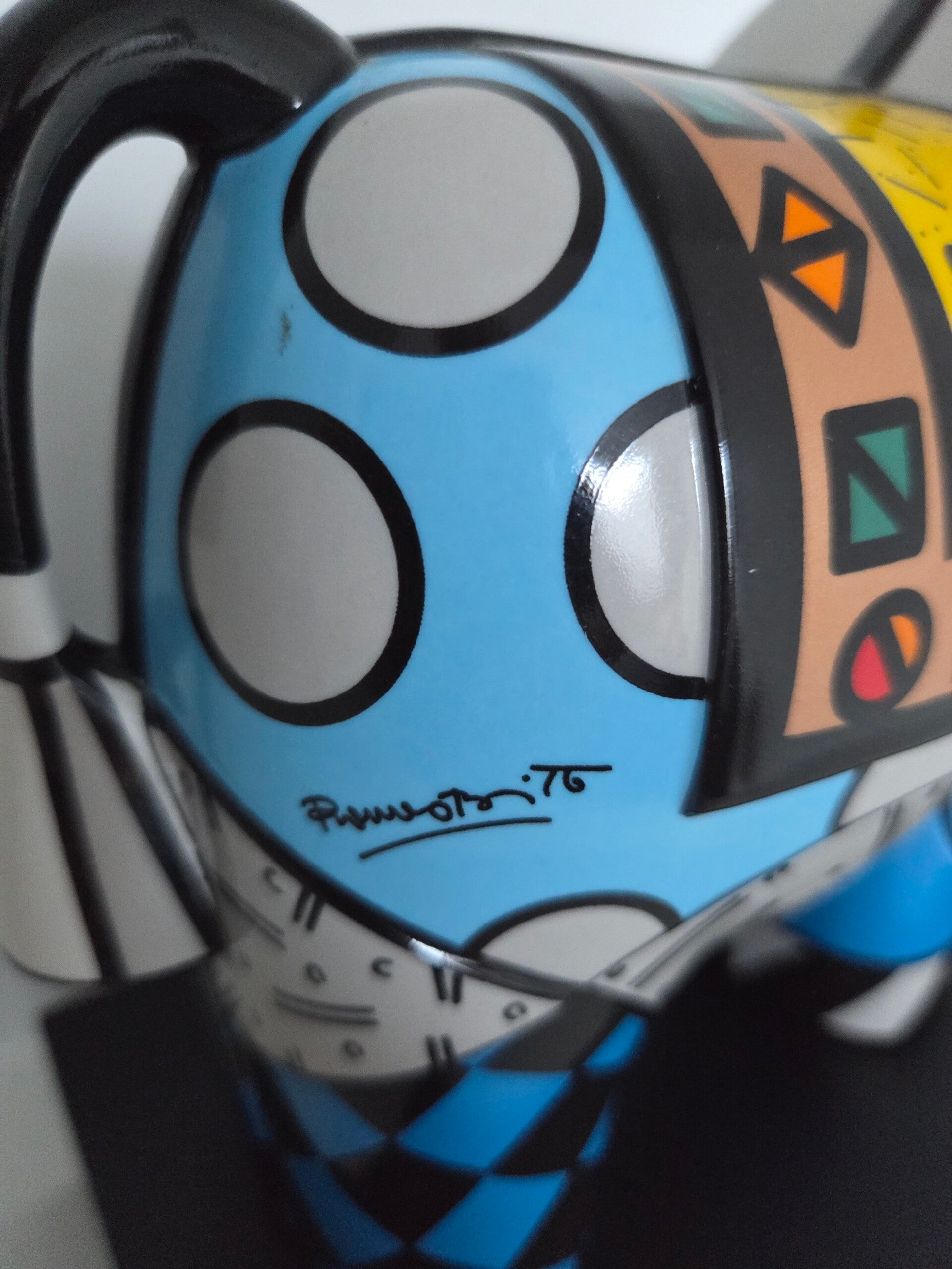 Dit is een porseleinen sculptuur getiteld "Great India 2" (of Great India II), ontworpen door de beroemde Braziliaanse popart-kunstenaar Romero Britto in samenwerking met het merk Goebel.