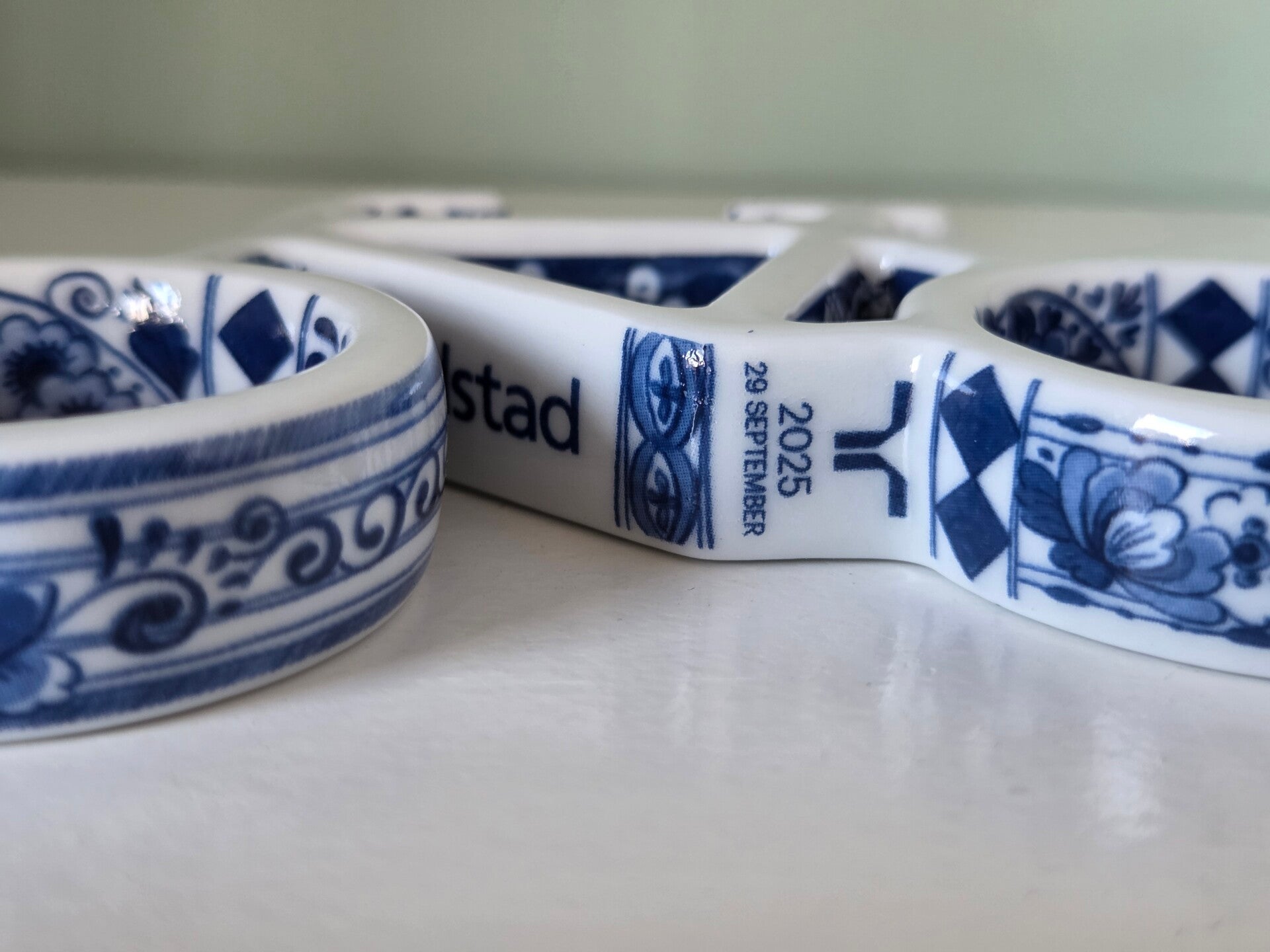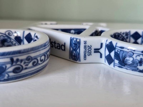 Ontwerp: Het beeldje combineert een eigentijdse, minimalistische vormgeving met een klassiek Delfts blauw decor. In dit specifieke ontwerp zijn 65 kleine bloemen verwerkt, die symbool staan voor de 65-jarige reis van het bedrijf.
