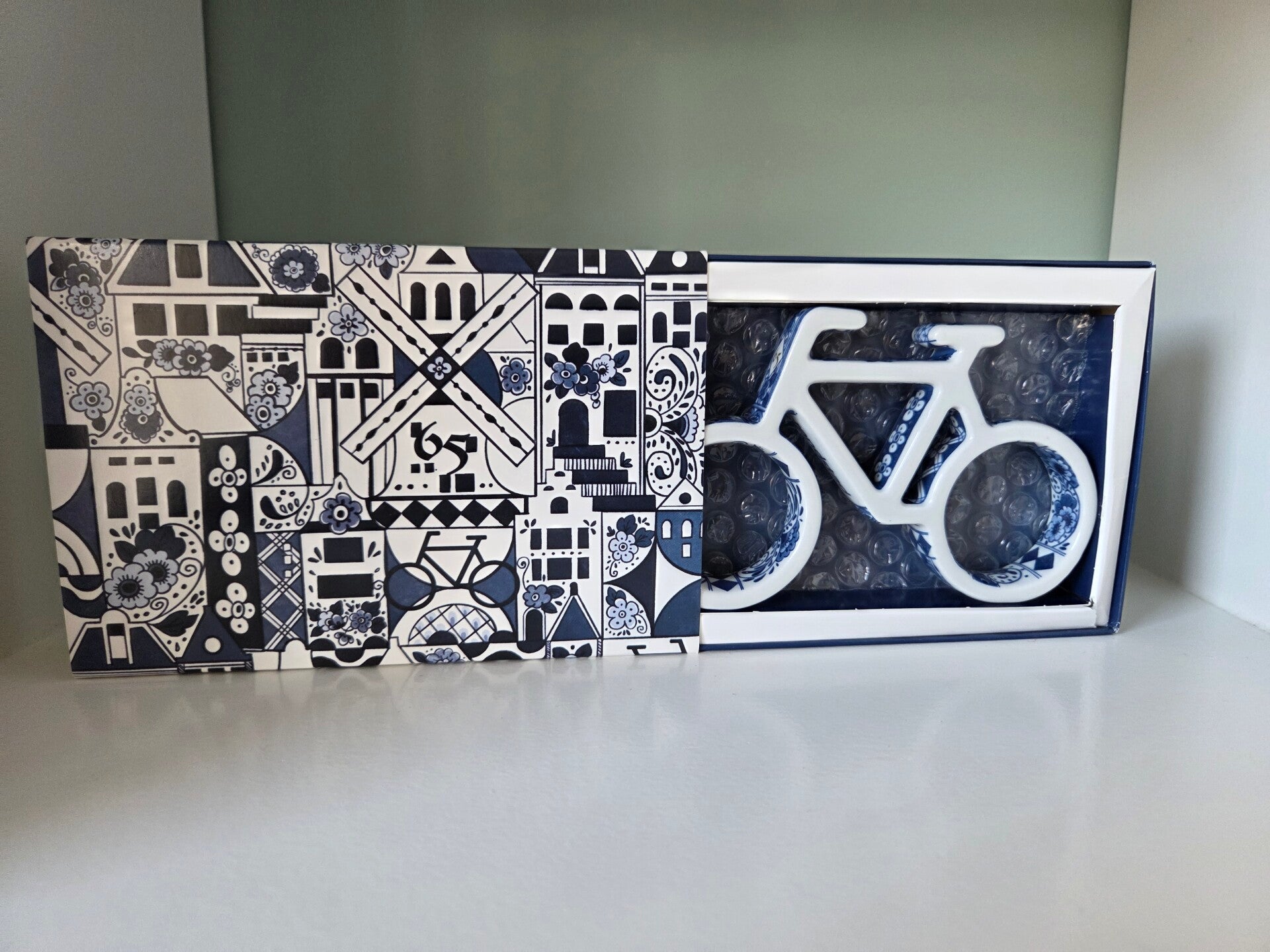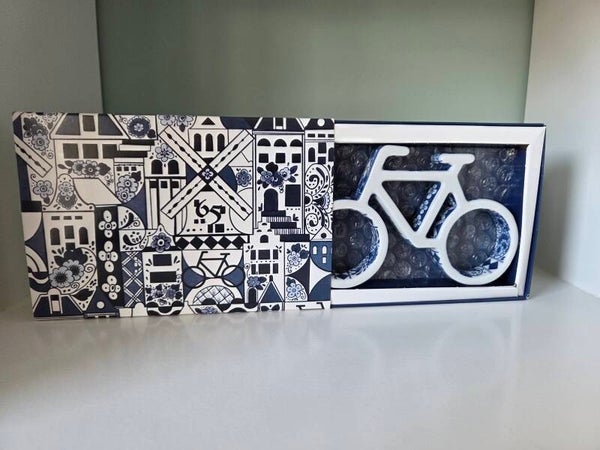 Dit object is een Delfts blauw keramisch fietsje, ontworpen door de bekende Nederlandse ontwerper Marcel Wanders. Het is een speciale gelimiteerde jubileumeditie die in september 2025 werd uitgegeven ter gelegenheid van het 65-jarig bestaan van de Randstad Groep.