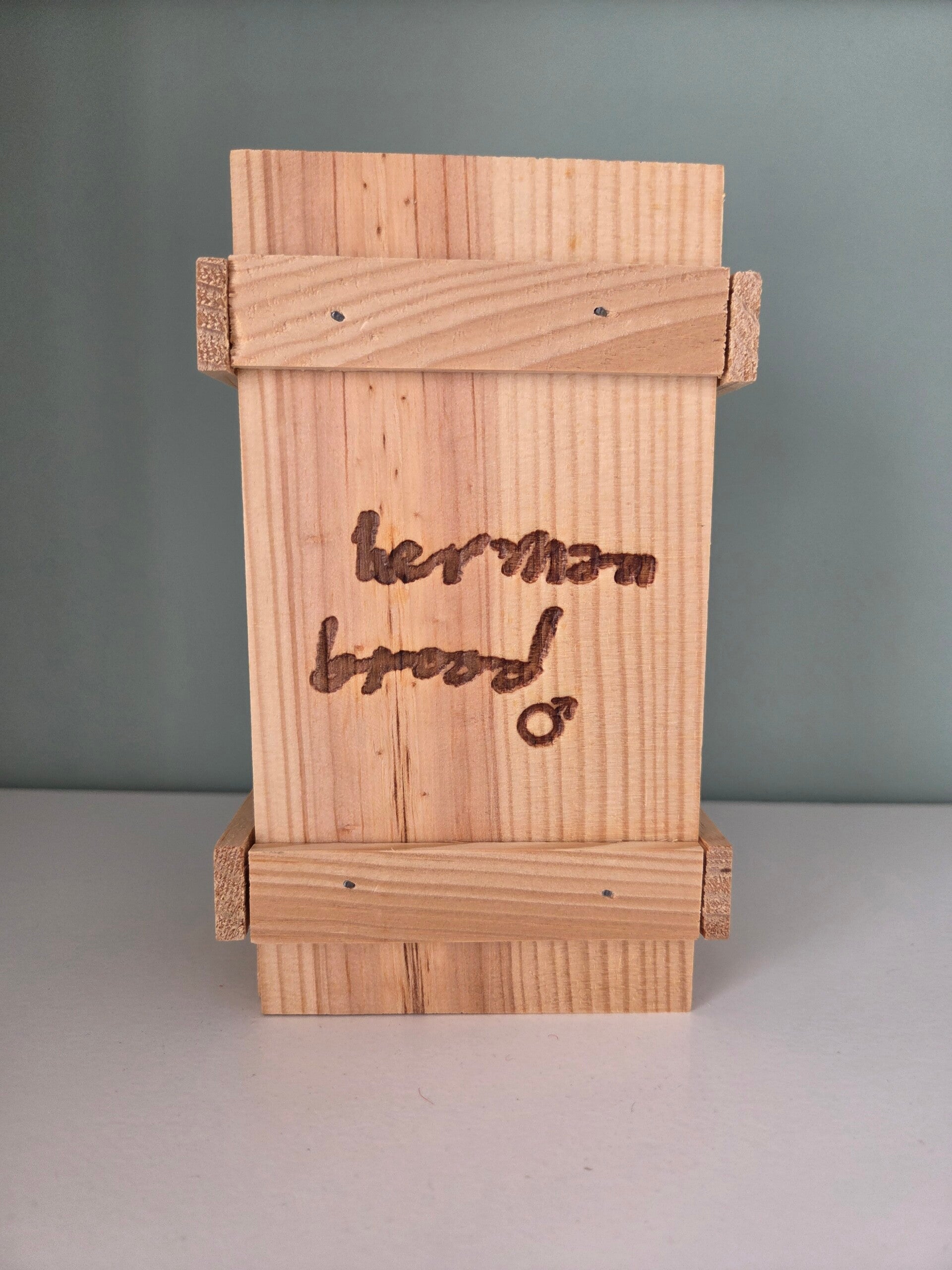 Herman Brood parfum flesje (leeg) ' Tough Bump' in originele houten kistje. Met Herman Brood signatuur op zowel het flesje als op het houten kistje (5x8x15 cm).