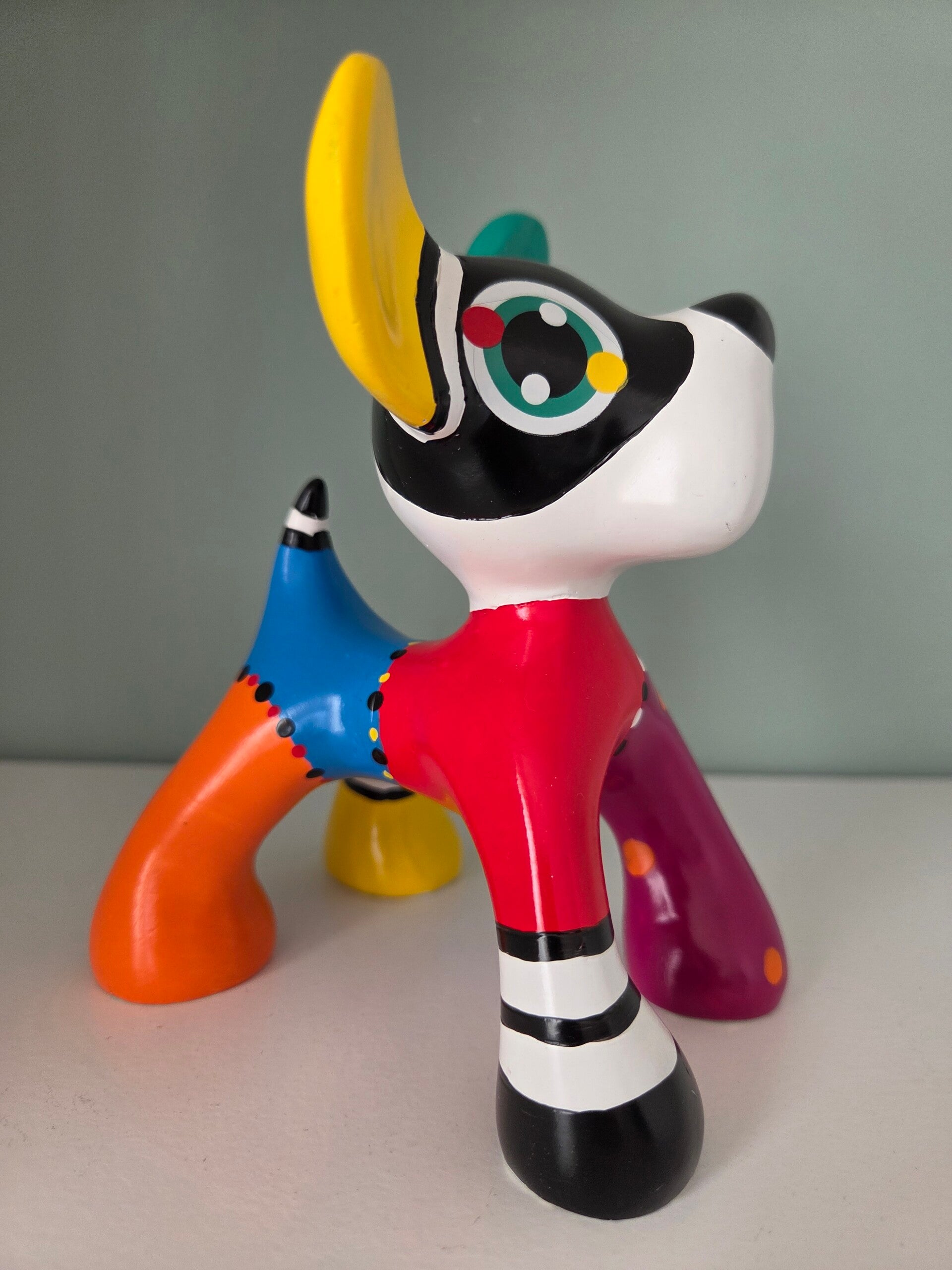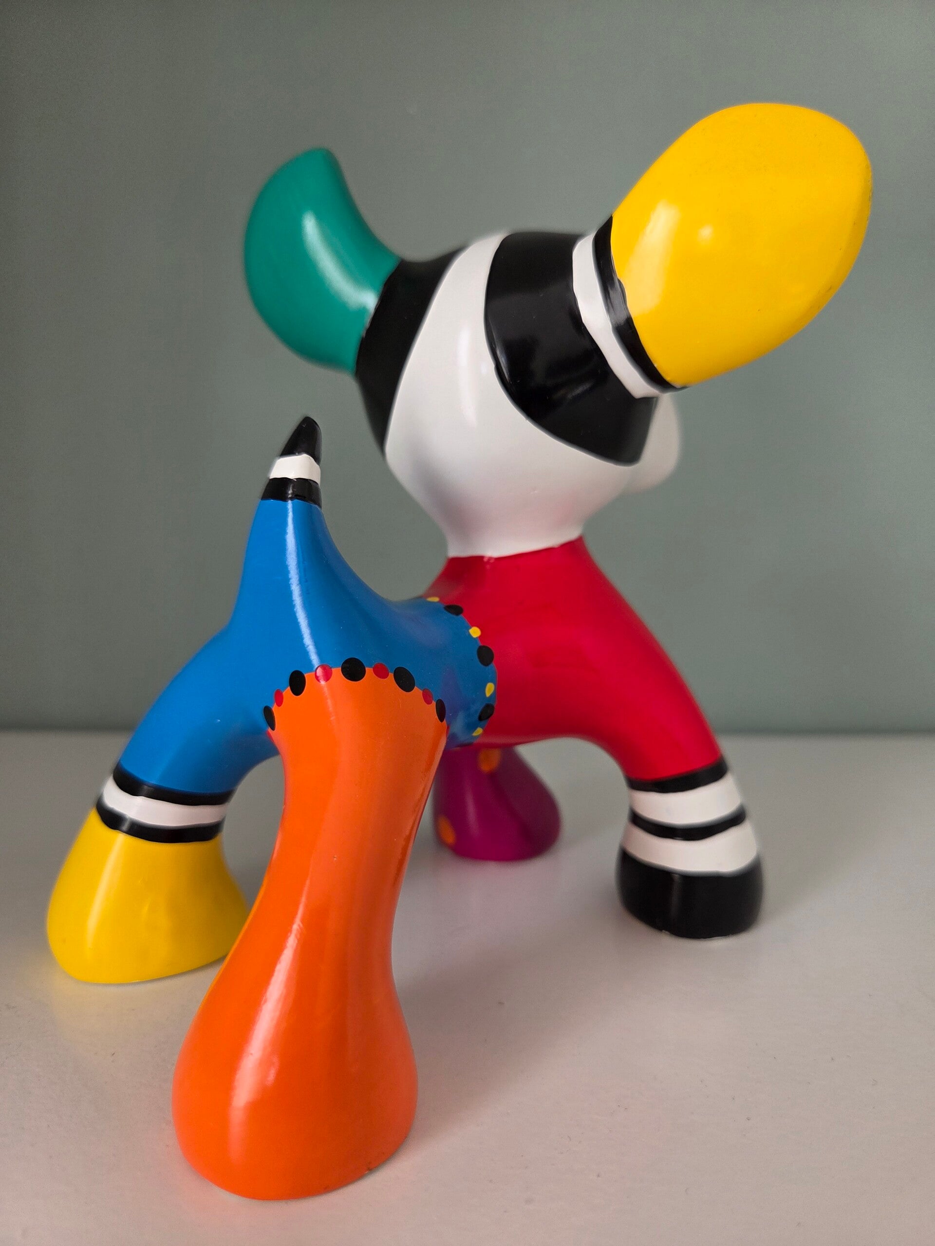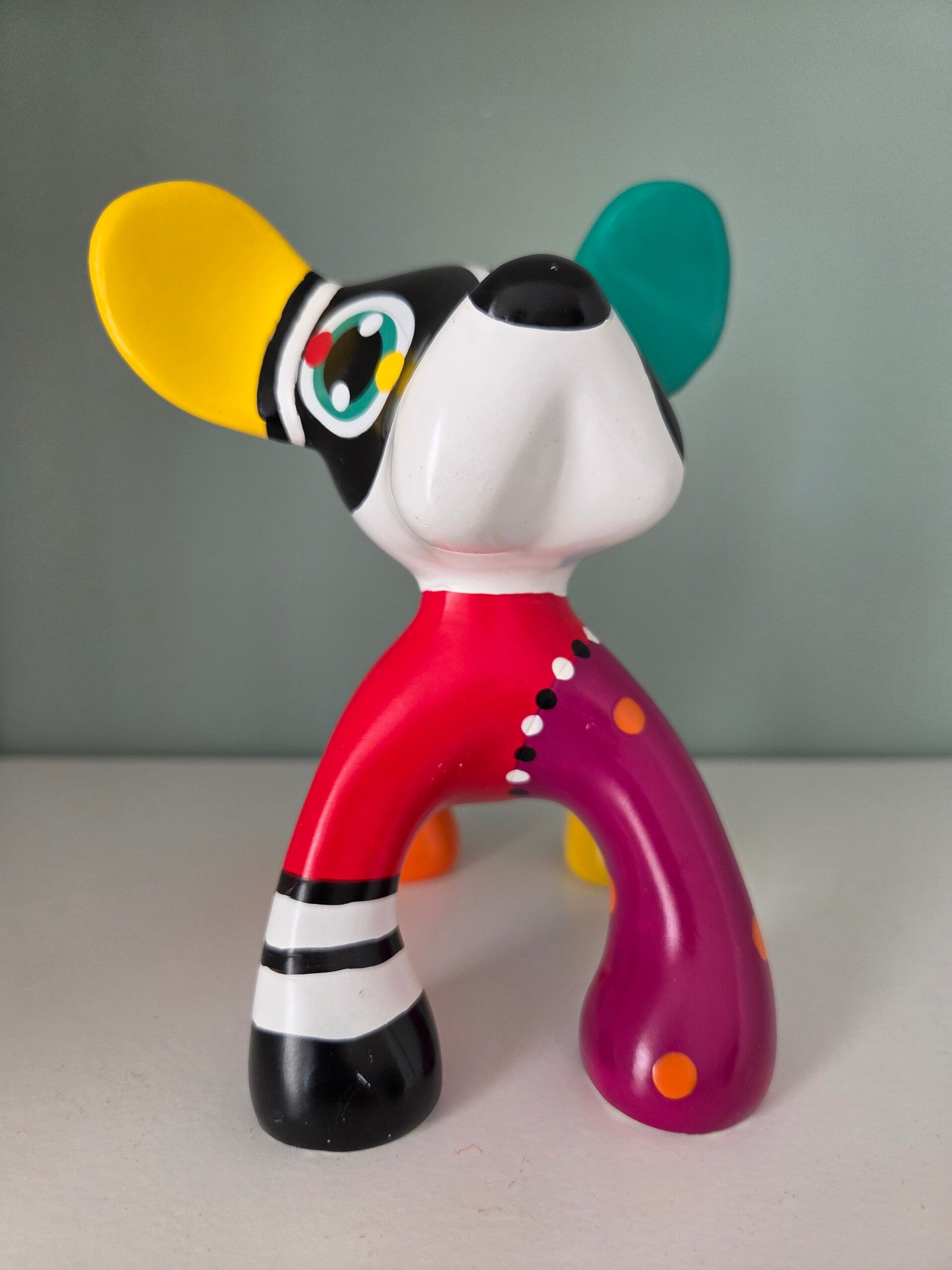 Deze vrolijke hondenfiguurtjes zijn met de hand beschilderd. Kleurrijk popart hondenfiguurtje. Kortom, deze popart figuurtjes zijn gelimiteerd, stijlvol en origineel. De perfecte blikvanger voor je interieur!